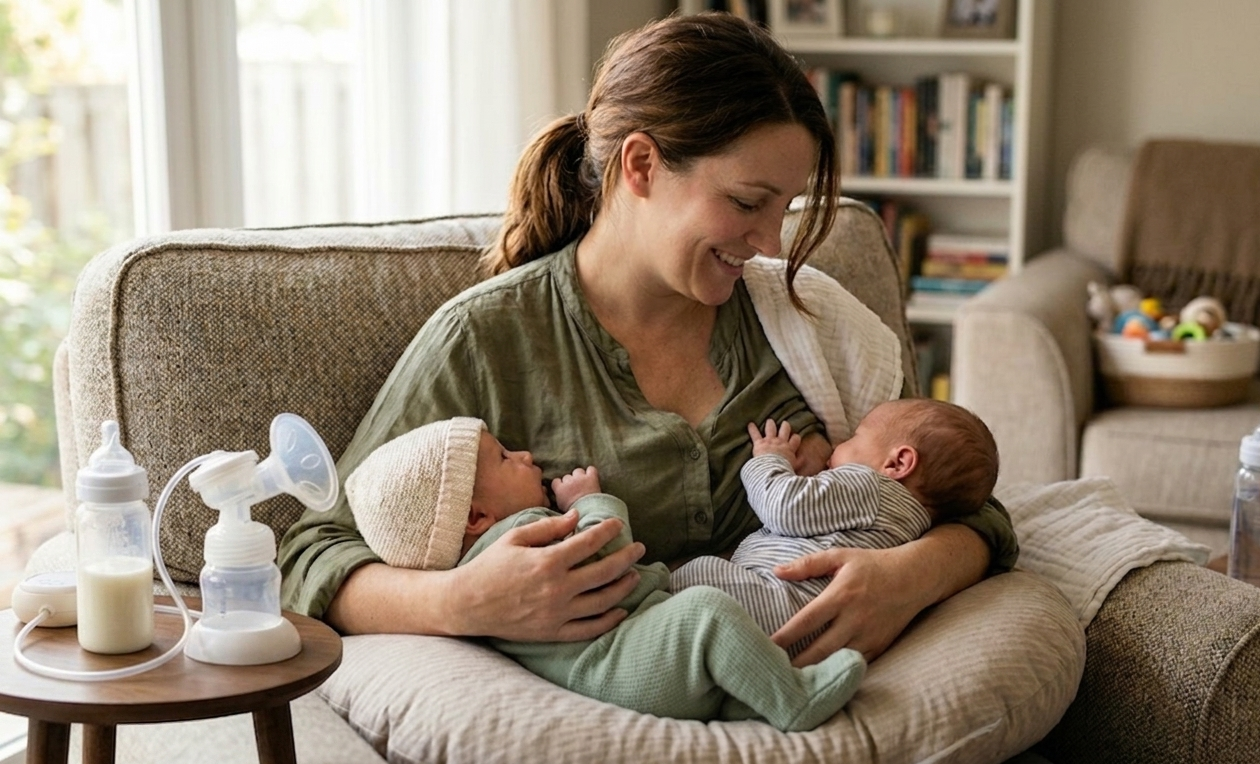 Nobody had really prepared me for the logistics of it. The books talked about breastfeeding. Lactation consultants talked about breastfeeding. But breastfeeding twins is its own thing, and the advice I kept finding assumed you had one baby and two free hands.