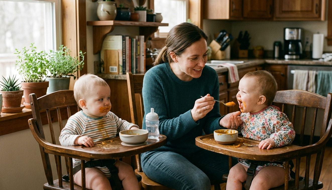 I still think about the first time I tried to give my girls solid food. I had pureed a small amount of sweet potato, warmed it up, wiped down two high chair trays, and sat down between them feeling very prepared. One of my daughters opened her mouth like a little bird. The other stared at the spoon like I was pointing something dangerous at her face and then slowly pushed her lips together into a hard no.
